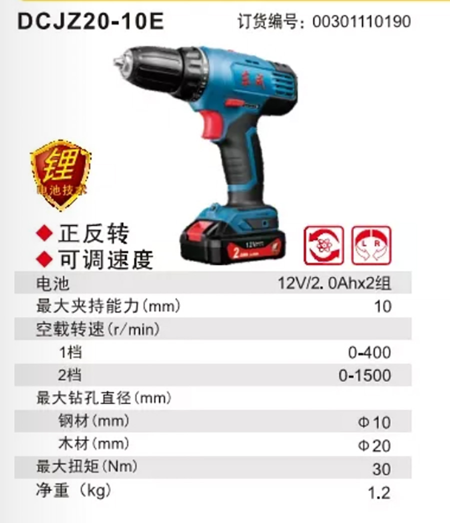 產(chǎn)品名字:東成充電鉆DCJZ20-10E